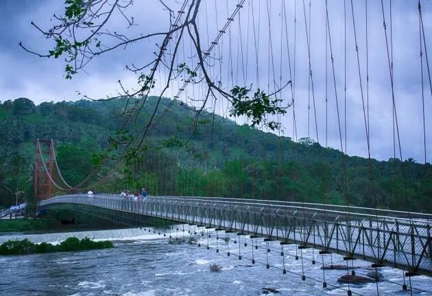 Thumboormuzhy Hanging Bridge, built across the Chalakudy River near Athirappilly, is a stunning attraction offering a mesmerizing view of the flowing river, lush greenery, and butterfly garden nearby.